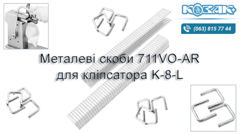 Данні скоби 711V0-AR використовуються кліпсаторами K-8-L для кліпсування пакетів та сіток (сітчастих пакетів) .