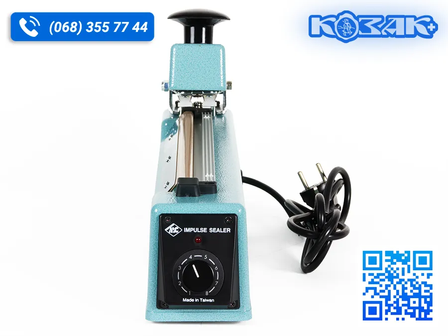 Електричний зварювач пакетів ME-405НC - ручний настільний зварювач полімерної плівки з механічною обрізкою. Зварювач призначений для зварювання пакетів та мішків (формування шва) з різних плівок - поліетиленової, поліпропіленової плівок, а також ламінованого паперу в процесі виготовлення різних виробів з термозварюваних матеріалів для пакування товарів.