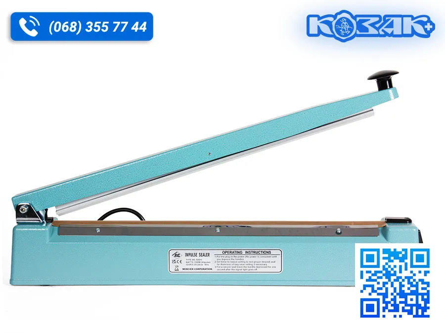 Електричний зварювач пакетів ME-505НІ - ручний настільний зварювач полімерної плівки. Зварювач призначений для зварювання пакетів та мішків (формування шва) з різних плівок - поліетиленової, поліпропіленової плівок, а також ламінованого паперу в процесі виготовлення різних виробів з термозварюваних матеріалів для пакування товарів.
