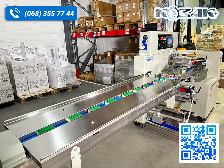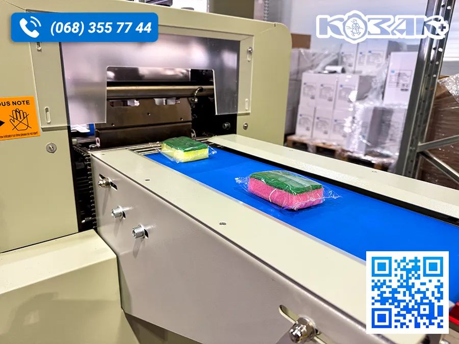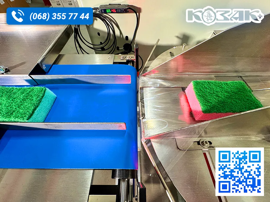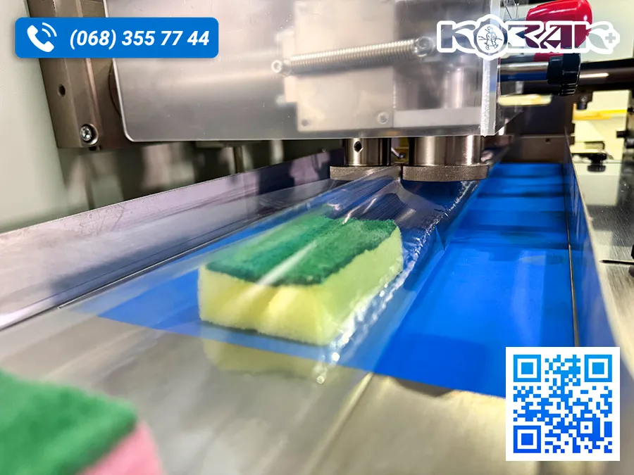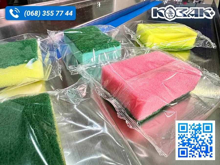 Пропонуємо Вашій увазі відеоролик, у якому демонструється процес пакування кухонних губок в упаковку типу flow-pack (флоу-пак) за допомогою пакувальної машини BG-450XDSF.