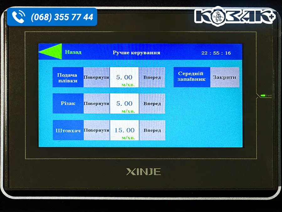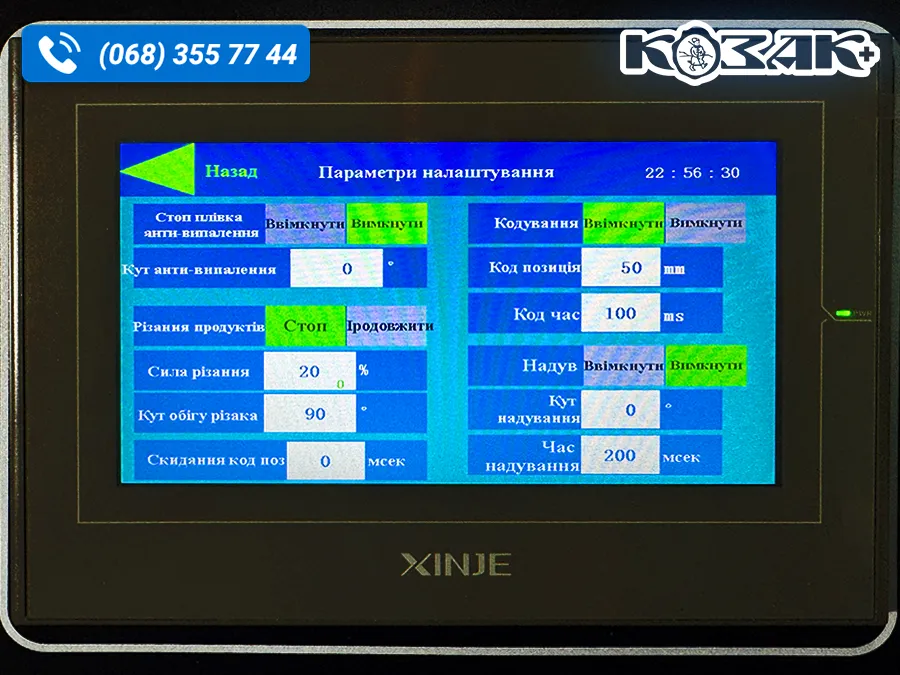 - Зупинка машини в обраному положенні, без застрягання різака і без втрати плівки.