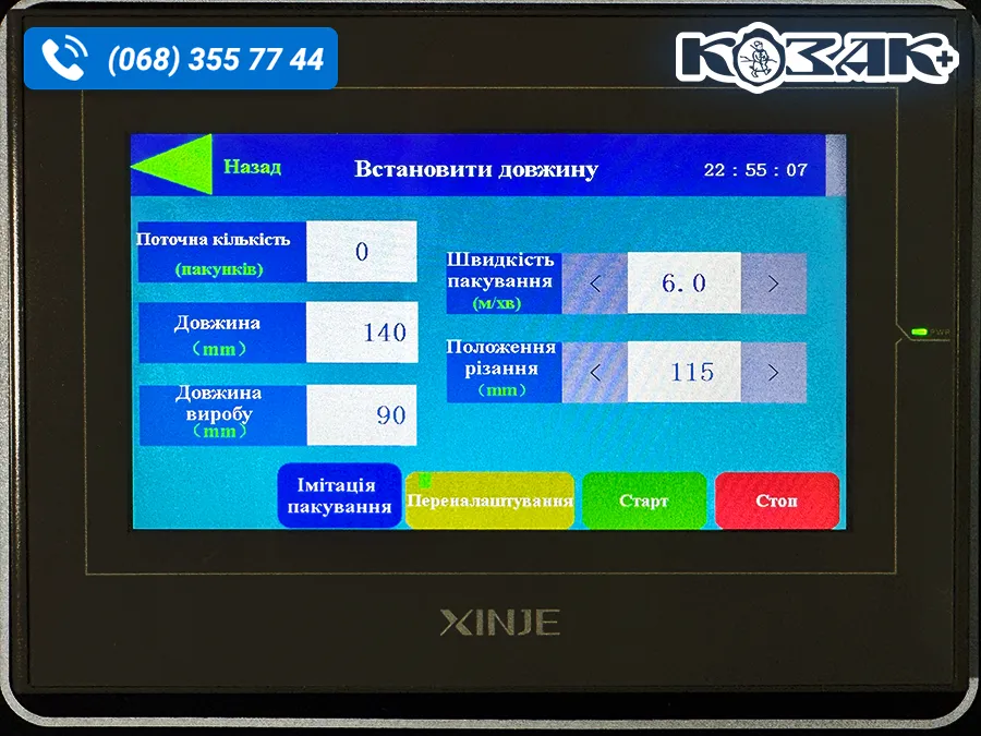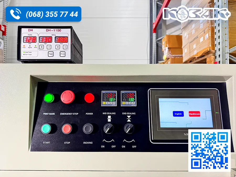 - Панель керування машиною, зручне і швидке налаштування параметрів, коли продукт сприймається датчиком, він автоматично упаковується, в іншому випадку процес зупиняється.