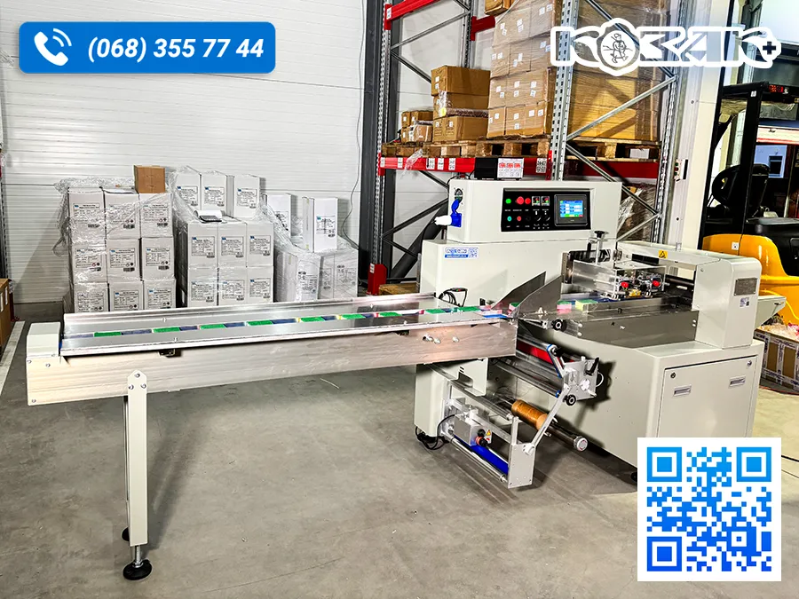 - Три сервомотори, перетворювач і програмований логічний контролер, гнучке налаштування довжини пакета і обрізання, що економить час та плівку.