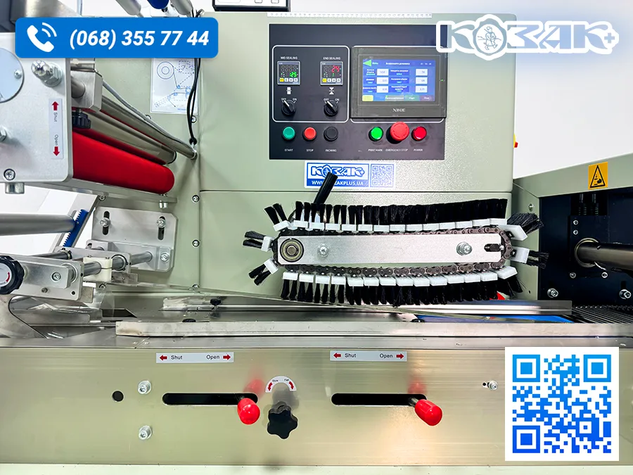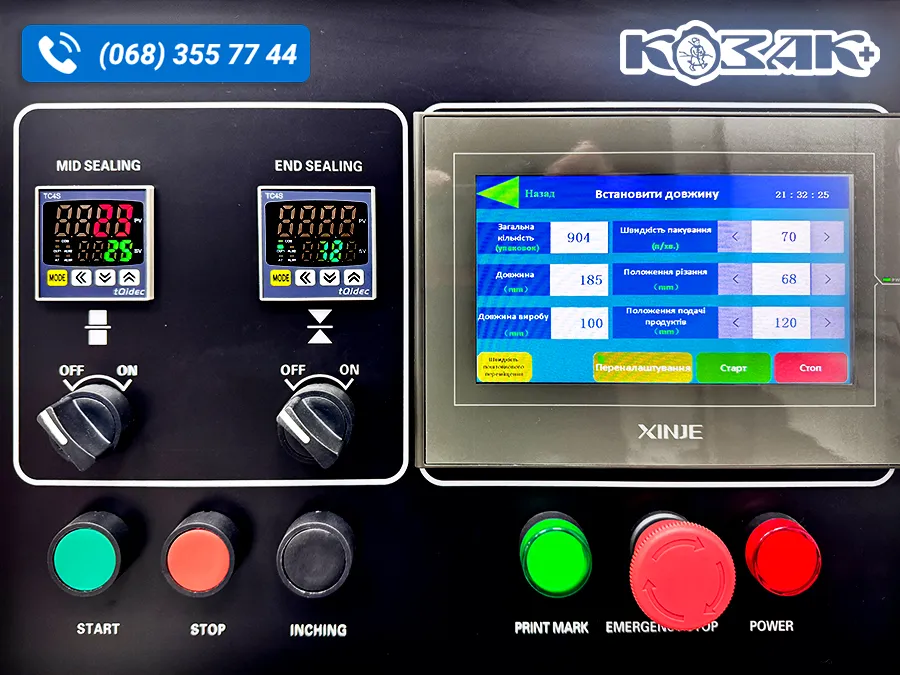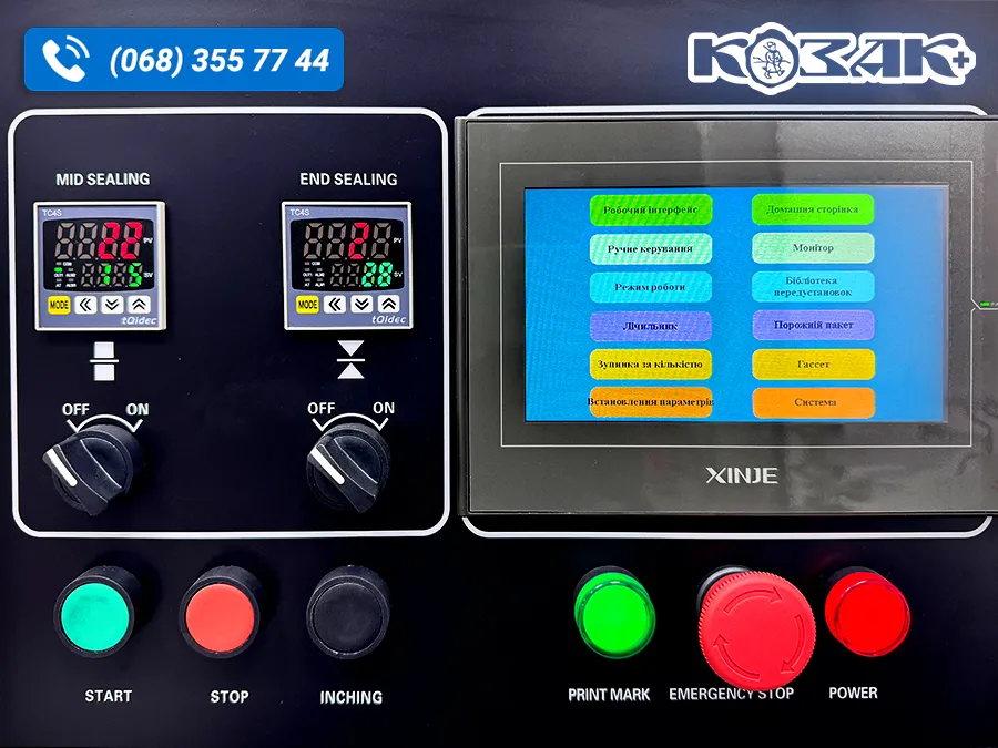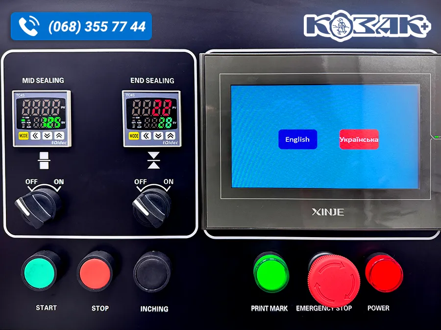 - Панель керування машиною, зручне і швидке налаштування параметрів, коли продукт сприймається датчиком, він автоматично упаковується, в іншому випадку процес зупиняється.