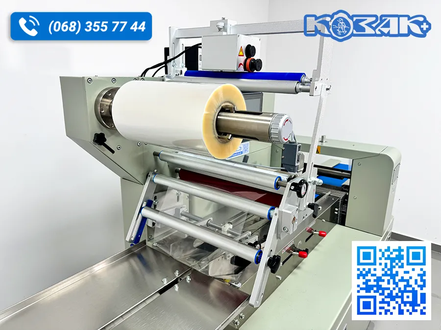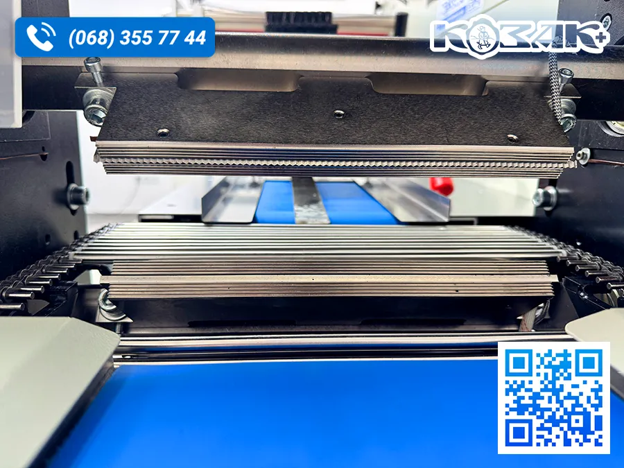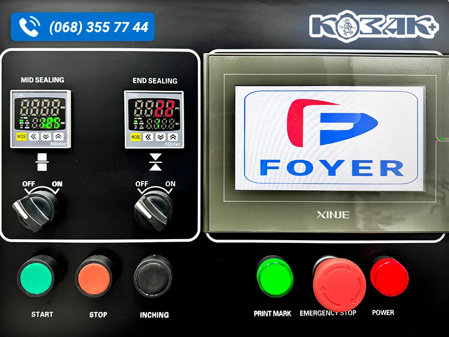 - Три сервомотори, перетворювач і програмований логічний контролер, гнучке налаштування довжини пакета і обрізання, що економить час та плівку.