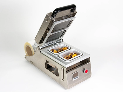 Дана плівка шириною 130 мм ідеально підходить для пакування харчових лотків розміром 14х9 cм за допомогою ручного зварювача лотків FOYER SY-01.