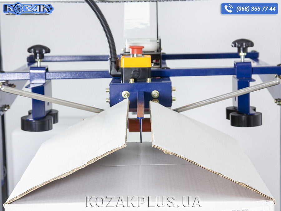 - Наявність складального пристрою для автоматичного закривання верхніх клапанів картонних коробів