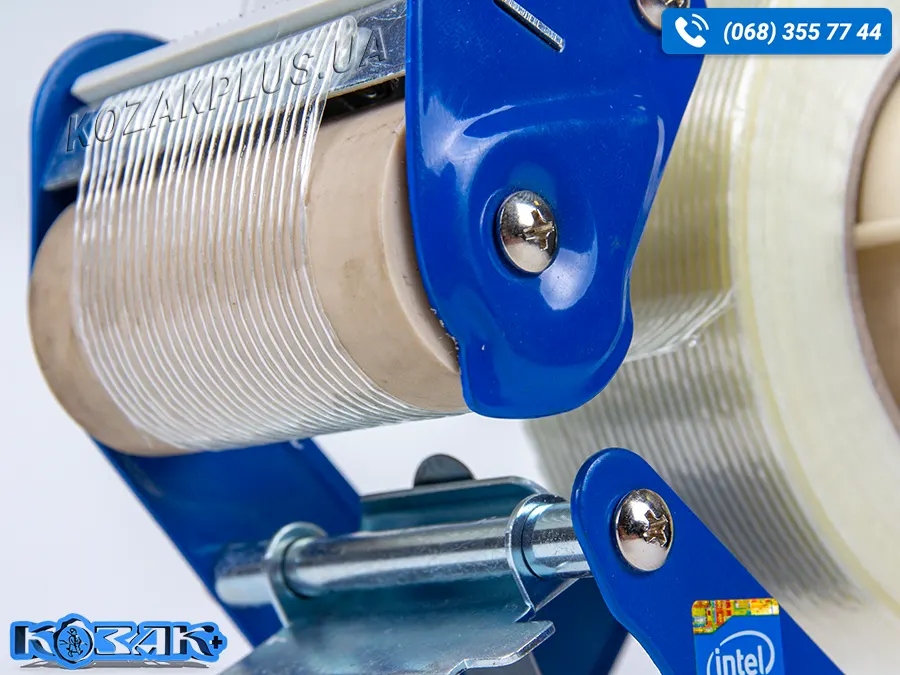 Стрічка клейка «Superstrap mono» - клейка стрічка прозорого кольору ламінована поліпропіленом, армована (укріплена) сіткою зі скловолокна. Виробництво компанії Supertape, Нідерланди.