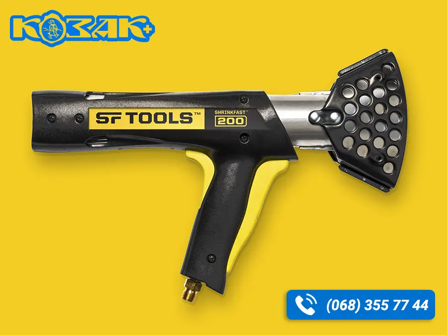 Нагрівальний інструмент Shrinkfast 200 - термозбіжний газовий пальник, призначений для пакування способом термоусадки вантажів на піддонах у ковпак з термозбіжної плівки, а також будь-яких інших вантажів, обгорнених термозбіжною плівкою. Виробництво компанії SF Tools, США.