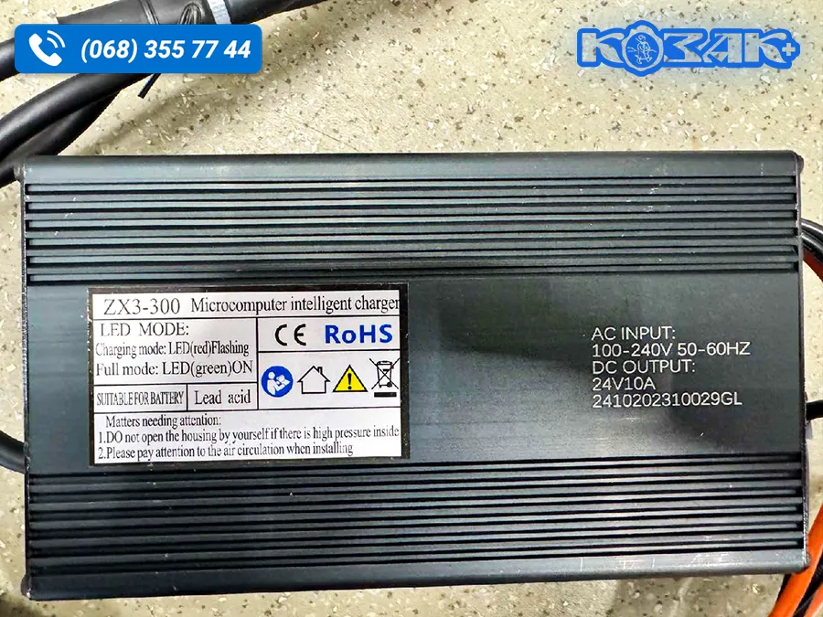 Зарядний пристрій 24V 10A - надійний зарядний пристрій призначений для електричних штабелерів Staxx PWS10S-i/PWS15S-i, що використовується для заряджання свинцево-кислотних акумуляторів (Lead Acid), AGM, GEL напругою 24В.