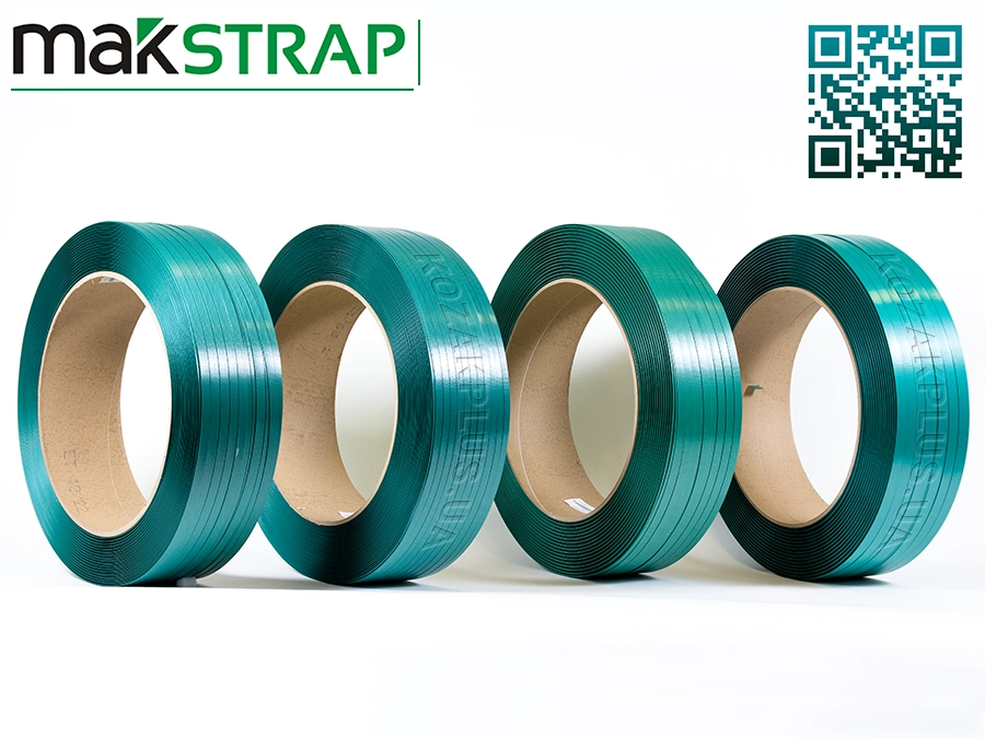 Об'язувальна стрічка Makstrap - пакувальна поліестерова страпінг стрічка із рифленою поверхнею для ручного або автоматичного пакування товарів. Виробництво - Makstrap, Польща.