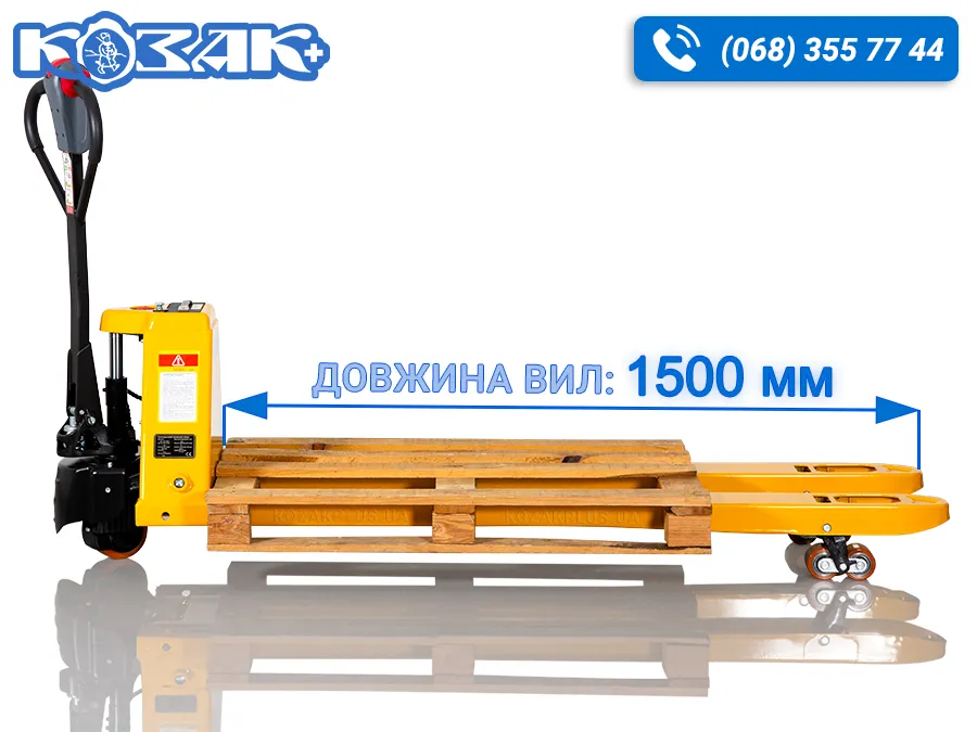 - Збільшена довжина вил для роботи з габаритним вантажем або двома палетами одночасно