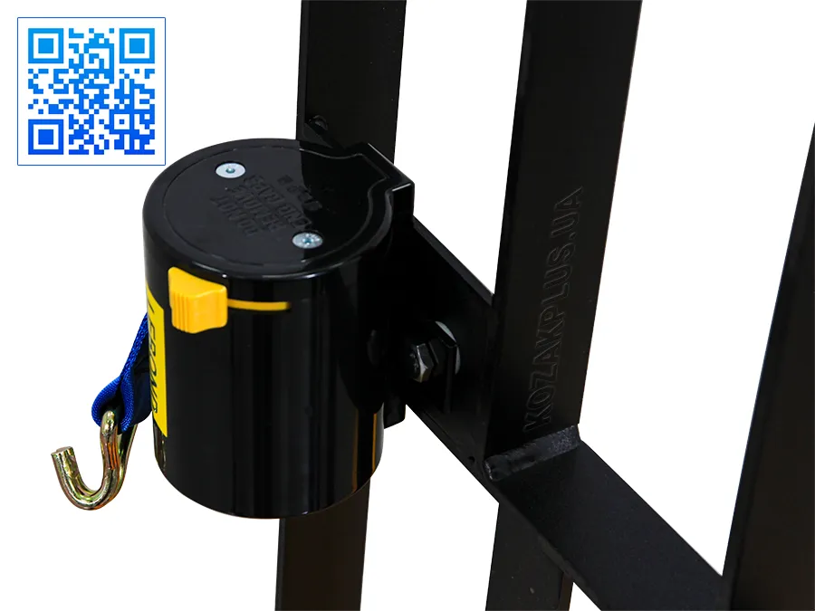 Опора для вантажу виготовлена зі сталевої зварної конструкції, розрахованої на інтенсивну експлуатацію в складських і виробничих умовах. Вона ефективно підтримує вантаж по всій висоті, забезпечуючи його фіксацію при розгоні, гальмуванні та маневруванні. Додатково передбачений фіксувальний ремінь, який дозволяє надійно закріпити вантаж на вилах.