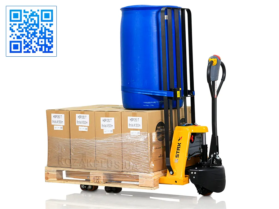 Візок вилочний палетний Staxx EPT15H-D - інноваційна електрична самохідна рокла з міцною опорою для вантажу, призначена для безпечного та стабільного транспортування високих та нестійких вантажів на палетах вагою до 1,5 т. Наявність опори значно підвищує рівень безпеки оператора та зменшує ризик зміщення або падіння вантажу під час руху. Оптимально підходить для експлуатації в логістичних центрах, супермаркетах, складах і на підприємствах. В комплекті швидкий зарядний пристрій для АКБ. Виробництво компанії Staxx, Китай.