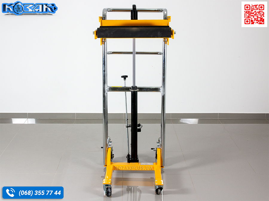 • Конструкція передбачає ножну педаль підйому гідравлічного механізму штабелера