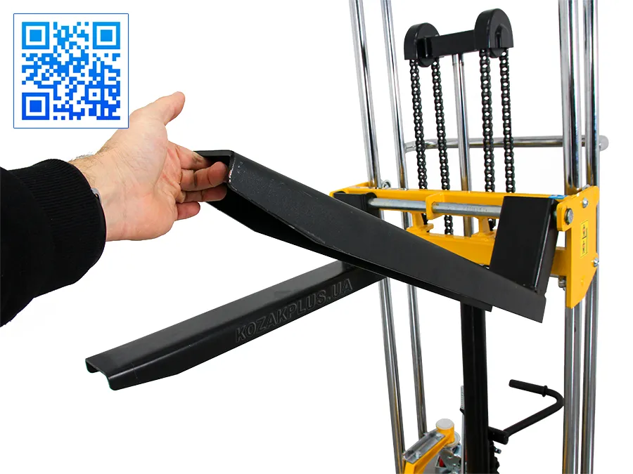 • Довговічність і надійність штабелера забезпечує міцна конструкція із хромованою рамою та хромованим поршневим штоком