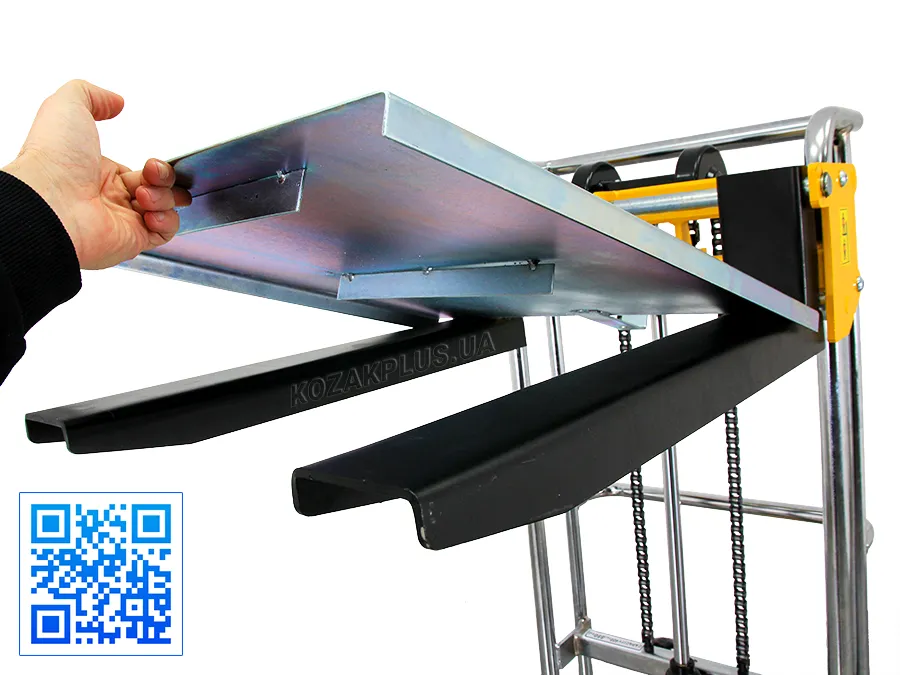 • Платформа штабелера може легко підніматися та опускатися за допомогою гідравлічного ножного насоса зі складною педаллю