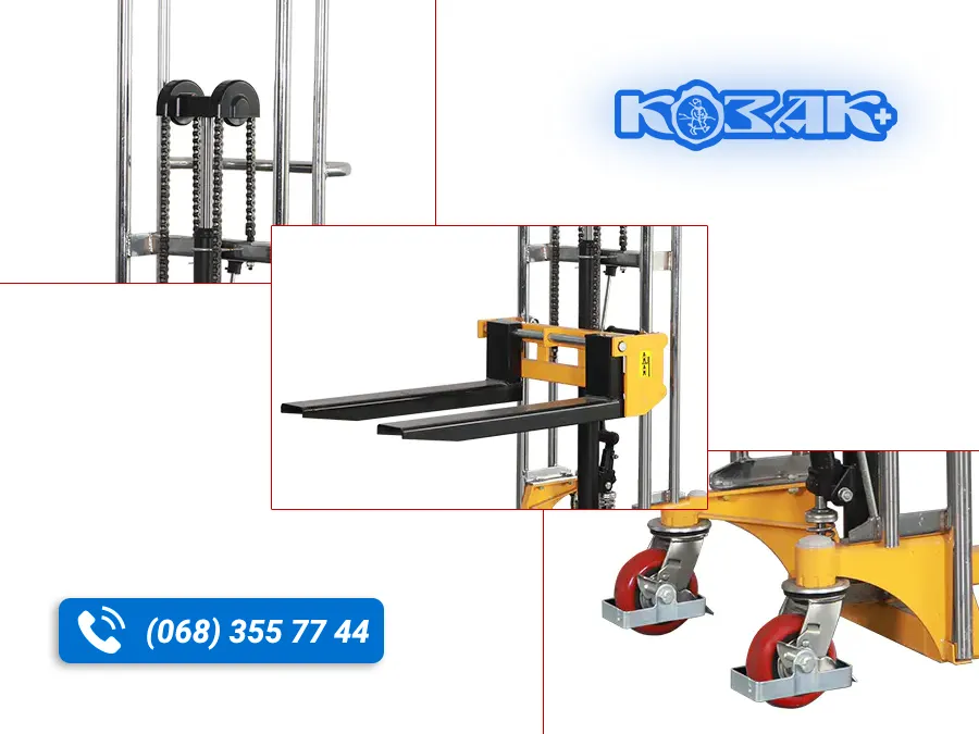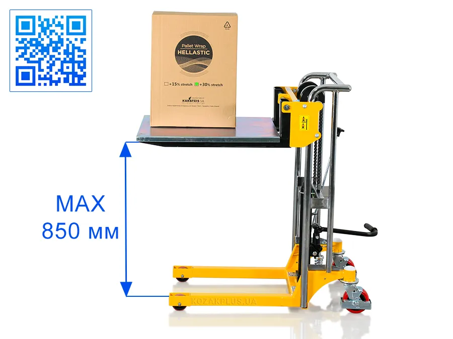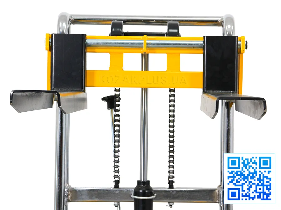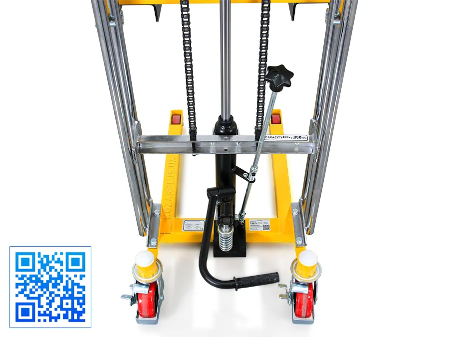 • Довговічність і надійність штабелера забезпечує міцна конструкція із хромованою рамою та хромованим поршневим штоком