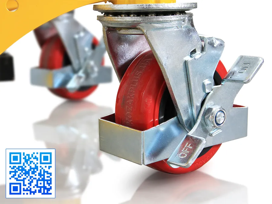 • Стійкість гарантується стабільною ходовою частиною з 2 опорними й 2 керованими колесами