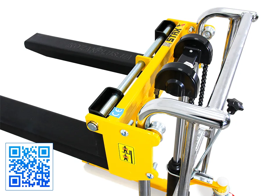 Штабелер Staxx PS400-850 оснащений стаціонарними вилами та комплектується спеціальною платформою.