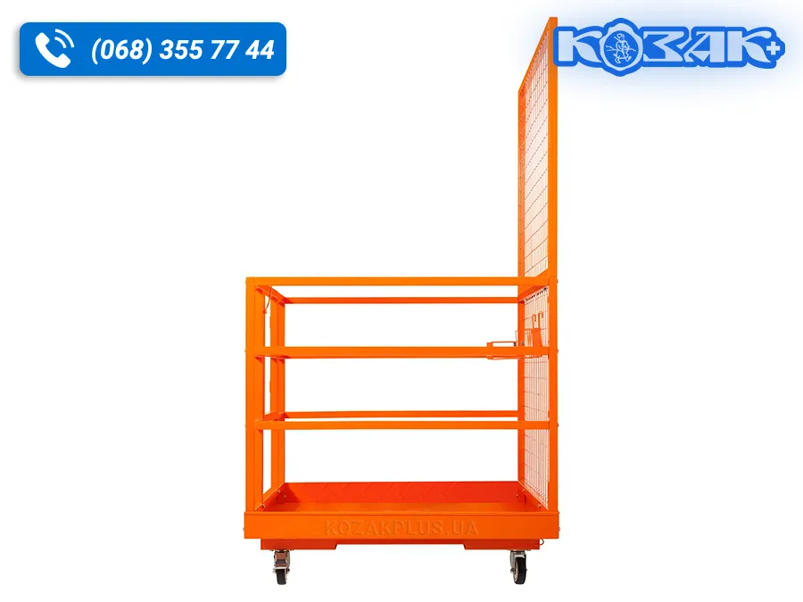 Наявність коліс дозволяє зручно переміщати платформу по території складу без навантажувача, а страхувальні елементи забезпечують додатковий рівень захисту персоналу.