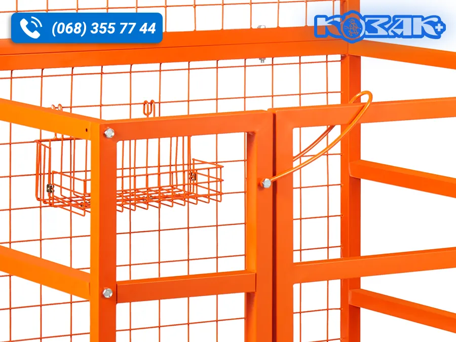 • Вбудований кошик для інструментів. Платформа оснащена металевим сітчастим кошиком для зберігання інструментів, кріплень та витратних матеріалів. Кошик розташований з внутрішнього боку огорожі, що дозволяє тримати необхідний інструмент під рукою під час роботи на висоті та не захаращувати робочу поверхню платформи.
