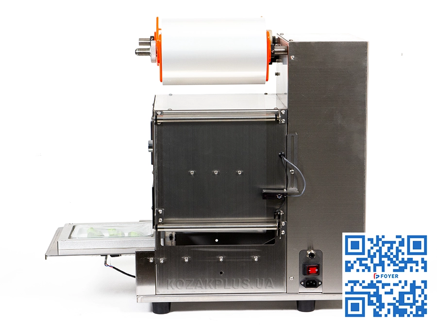 Трейсилер DQ250TA-E - настільна автоматична машина, яка призначена для запечатування лотків із харчовими продуктами за допомогою пакувальної плівки. Обладнання компактне, потребує мало місця. Простий в експлуатації, лотки автоматично подаються, наповнються газом, запаюються плівкою, обрізаються по контуру і висуваються. Основна його конструкція виготовлена з нержавіючої сталі та антикорозійного алюмінію. FOYER - власний бренд компанії КОЗАК+ з виробництвом в Китаї та Європі.