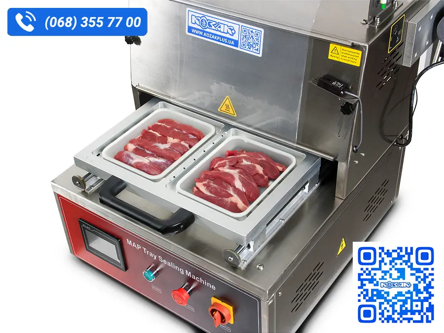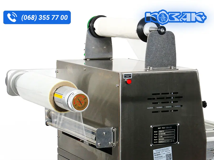 Трейсилер DQ450T-E з газонаповненням - настільна автоматична машина, яка призначена для запечатування лотків із харчовими продуктами за допомогою пакувальної плівки. Обладнання компактне, потребує мало місця. Простий в експлуатації, лотки подаються вручну, автоматично наповнються газом, запаюються плівкою, обрізаються по контуру і висуваються вручну. Основна його конструкція виготовлена з нержавіючої сталі та антикорозійного алюмінію. FOYER - власний бренд компанії КОЗАК+ з виробництвом в Китаї та Європі.