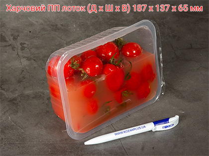 Лоток для запайки харчовий ПП - практична пластикова тара прямокутної форми, яка застосовується разом із плівкою для пакування різноманітних харчових продуктів: свіжі овочі та фрукти, делікатесні нарізки, м'ясні та рибні напівфабрикати, закуски, салати, готова їжа, тощо.