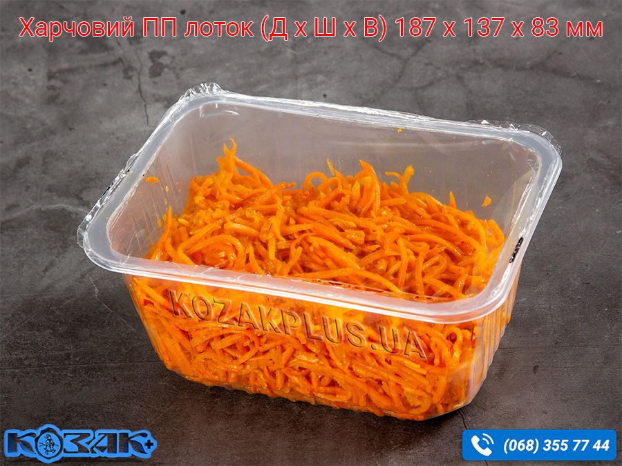Лоток для запайки харчовий ПП - практична пластикова тара прямокутної форми, яка застосовується разом із плівкою для пакування різноманітних харчових продуктів: свіжі овочі та фрукти, делікатесні нарізки, м'ясні та рибні напівфабрикати, закуски, салати, готова їжа, тощо.