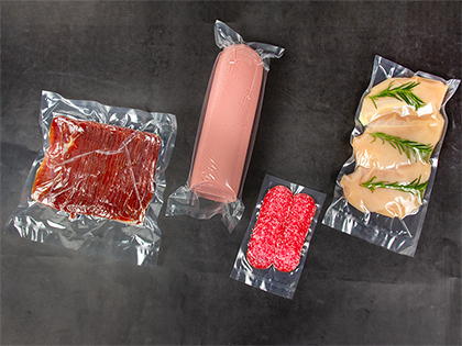 В основному ці вакуумні пакети використовуються для пакування харчових продуктів: ковбаси, сосиски, сарделі, шинка, балик інші готові м'ясні вироби, сирі м'ясні продукти, у тому числі перед заморозкою: курячі тушки, курчата, тощо, твердий сир, риба солона й копчена, різні делікатеси (нарізки).