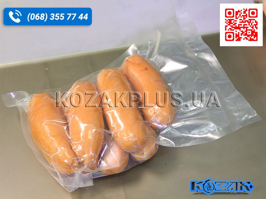 Пакет харчовий вакуумний - прозорий пакет з полімерних матеріалів для пакування харчових продуктів за допомогою вакуумних машин. Виробництво компанії КОЗАК+, Україна.