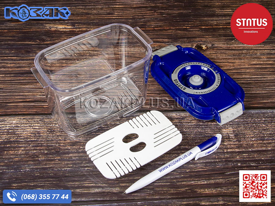 - Корпуси контейнерів Status виготовлені з екологічного й міцного полімеру нового покоління Tritan™, у якому повністю відсутній шкідливий хімічний компонент Бісфенол А (Bisphenol A, BPA)