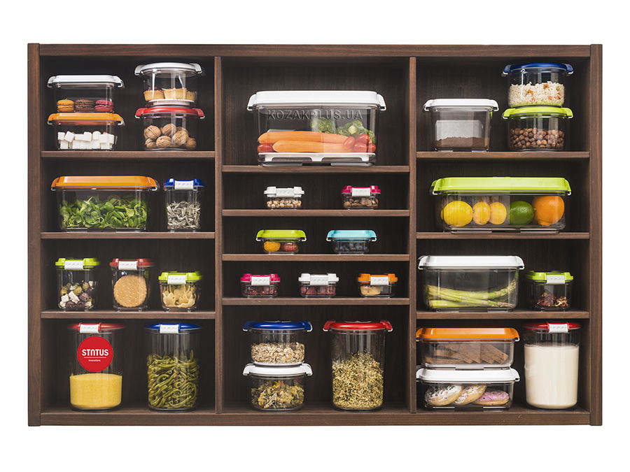 - З контейнерами Status робочий простір холодильника або шафи використовується дуже раціонально, продукти захищені, запахи не змішуються, строки придатності збільшуються