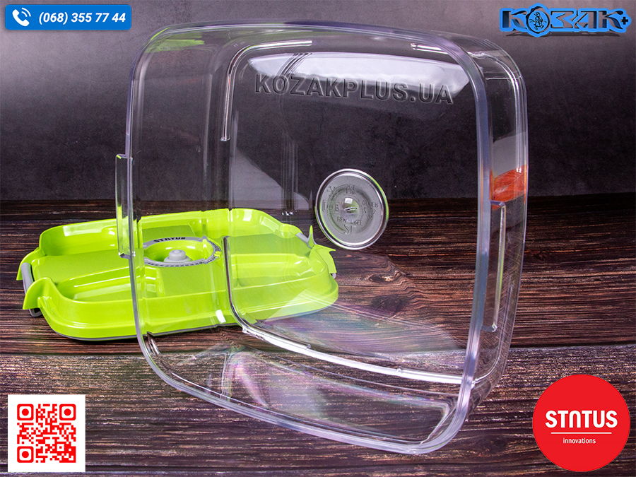 - Корпуси контейнерів Status виготовлені з екологічного й міцного полімеру нового покоління Tritan™, у якому повністю відсутній шкідливий хімічний компонент Бісфенол А (Bisphenol A, BPA)
