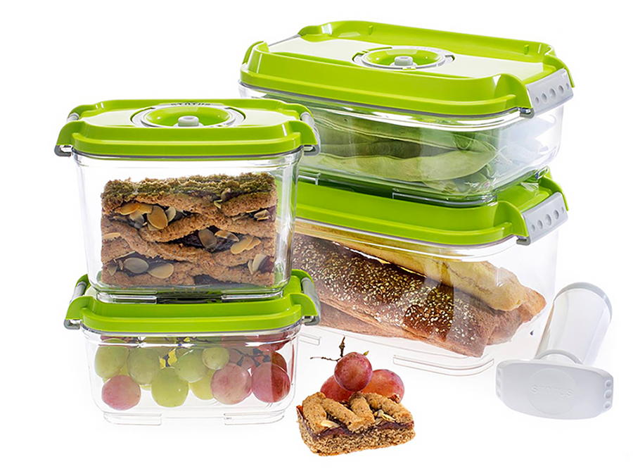 Завдяки використанню вакуумних контейнерів, продукти не зазнають зовнішнього впливу й строк зберігання значно збільшується. Продукти у вакуумному контейнері захищені від шкідливої мікрофлори, зберігають свої смакові якості, аромат і свіжість, а запахи в холодильнику не перемішуються.