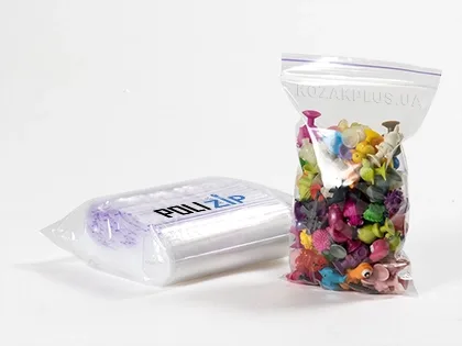 Головна перевага пакетів-струна - це надійна багаторазова застібка Zip-Lock (Ziploc), що дозволяє відкривати й герметично закривати пакет.