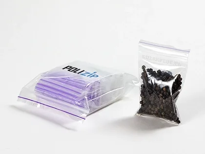 Головна перевага пакетів-струна - це надійна багаторазова застібка Zip-Lock (Ziploc), що дозволяє відкривати й герметично закривати пакет.